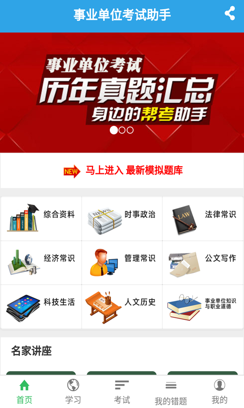 事業(yè)單位考試助手專為正在考取公務(wù)員、事業(yè)編制的學(xué)員設(shè)計(jì),涵蓋特訓(xùn)視頻,各模塊復(fù)習(xí)資料、在線題庫(kù)等功能。事業(yè)單位考試助手軟件定期更新在線題庫(kù)、學(xué)習(xí)資料以及特訓(xùn)視頻。 學(xué)員使用方便,隨時(shí)、隨地可查看復(fù)習(xí)資料。